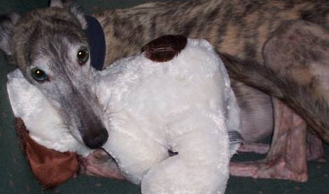 Did you know that Greyhounds are known as "the world’s fastest/greatest couch-potato”? It's true! They sleep a lot. What else does a racer do when not racing? They sleep. These dogs are easy to care for as they simply need a time where they can go outside for their daily sprint and then are happy to go right back inside to a warm, soft bed. All Greyhounds are adopted out with the understanding that they are an indoor pet; they have thin skin, making soft bedding in a warm indoor environment a necessity. Greyhounds are not meant to be guard dogs. This particular breed barks a lot less than other breeds and has not been bred for this purpose. Look for another type of dog to adopt if you're looking for a watchdog.
